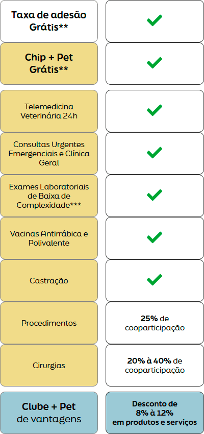 ** Taxa de Adesão e +Pet Chip de Identificação gratuitos por tempo limitado.